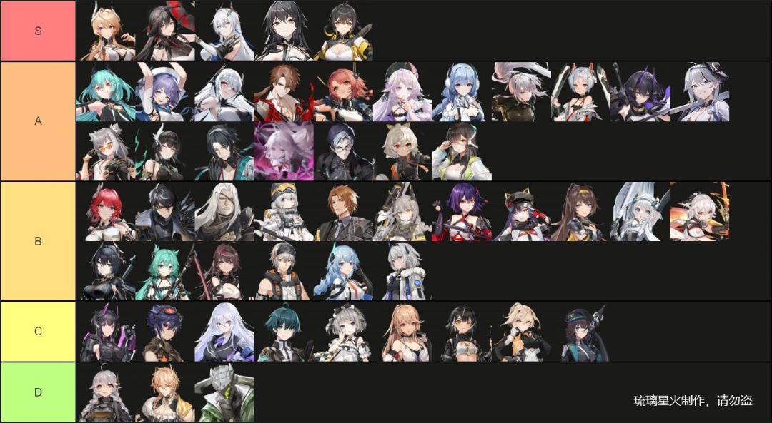 全角色综合强度图2.7版(懒得更新,游戏已退坑,现已永久停更)