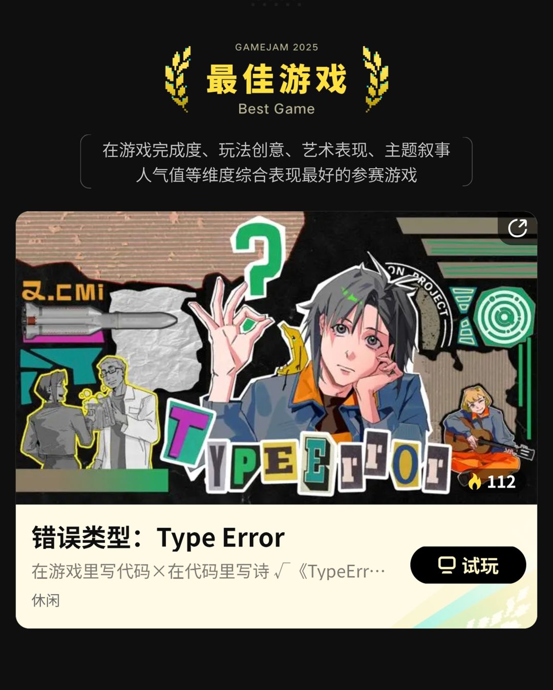 2025 聚光灯 21 天 GameJam 大奖现已公布,恭喜《 错误类型:Type Error 》荣获 “最佳游戏” 奖项!