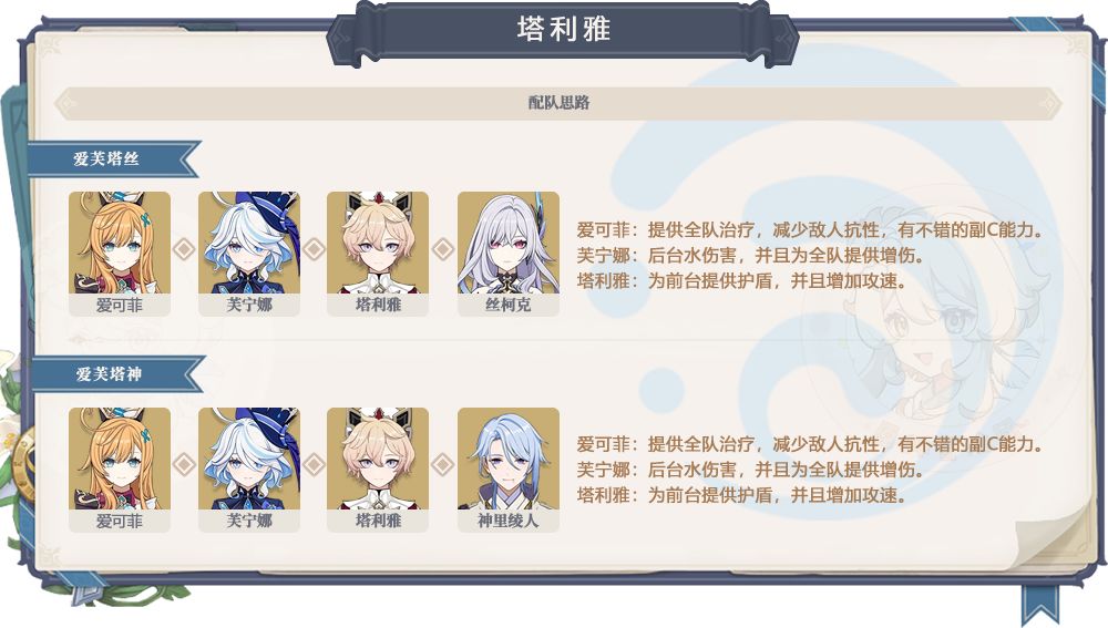 3、塔利雅抽取建议:丝柯克队伍的最佳四号位之一,能提供丝柯克比较需要的护盾和攻速,6命比较好用,攻速翻倍,用的上尽量去捞6命