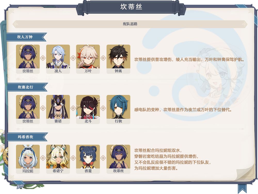 5、坎蒂丝抽取建议:用处并不是很大,比较关键只要的是1命的机制命座,延迟持续是时间,如果用的上就一定要有1命,其他命座并不是刚需有爱可菲和无爱可菲的丝柯克队伍可以说是两种体验,这个池子十分适合想要补强永冻队的小伙伴,属于性价比很高的池子。